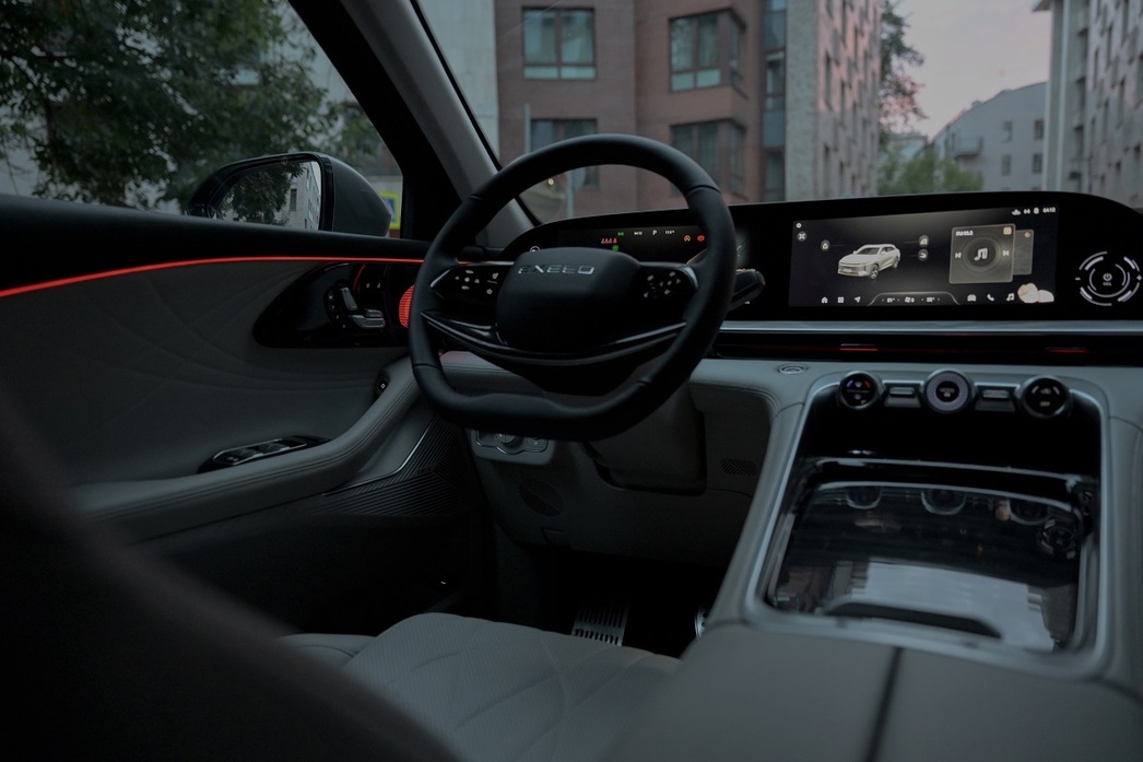 Разработчики EXEED нашли решение вечной дизайнерской проблемы: где разместить планшет, используемый для управления автомобильной электроникой и мультимедиа, чтобы он не выглядел как посторонний предмет. Решение элегантное: панорамный сенсорный дисплей двойной ширины просто заменяет «планшет» и приборную панель.