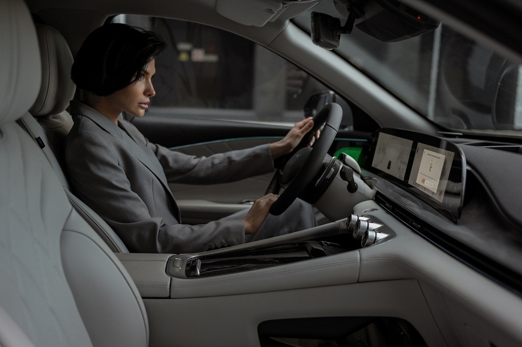 Сам салон полон сюрпризов. Это двухслойный козырек (один слой отворачиваем в сторону, второй остается для лобового стекла). Динамики в подголовнике водителя очень полезны при использовании телефона в режиме громкой связи. Есть даже два встроенных устройства, которые опытные водители привыкли покупать отдельно: видеорегистратор и аромадиффузор воздуха с тремя уникальными ароматами – ЗЕЛЕНЫЙ (свежий и натуральный), КРАСНЫЙ (спортивная страсть) и ЗОЛОТОЙ (успокаивающий и целебный). Вы можете установить одновременно три картриджа и переключаться между ними в зависимости от настроения.