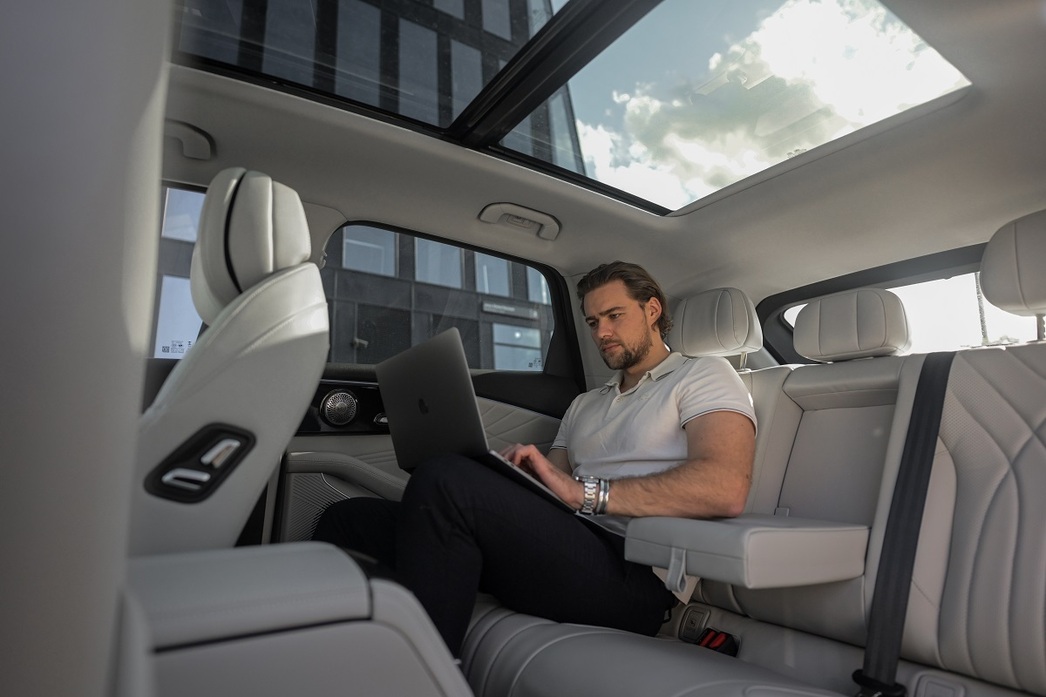 Помимо прочего, особое внимание мы уделяем интерьеру, с которым в первую очередь приходится «общаться» водителю и пассажирам. В салоне автомобиля кожаные сиденья и такая же отделка приборной панели с алюминиевыми вставками позволяют чувствовать себя максимально комфортно. Позаботились и о водителе – выдвижная часть сиденья позволяет вытянуть ноги. Просторные задние сиденья дарят комфорт и положительные эмоции – благодаря большому пространству. Весь салон приятен на ощупь и выполнен из качественных материалов.