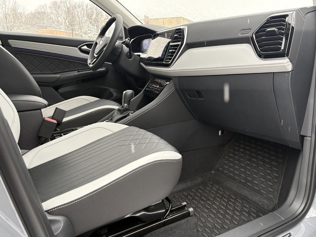Интерьер Jetta – настоящее королевство VW. Каждому компоненту Вольфсбурга было отведено определенное место, но в Чанчуне ничего не меняли, все осталось по-прежнему. Это касается и конфигурации приборной панели, с цифровым «незагроможденным» и ориентированным на водителя мультимедийным экраном (его диагональ по сегодняшним меркам небольшая – 10 дюймов, но имеет хорошее разрешение и быстрый отклик) и чисто немецким (привычным, знакомым); удобный, с традиционными алгоритмами работы) селектор АКПП, центральный подлокотник (регулируется даже «ручное» управление двухзонным климат-контролем.